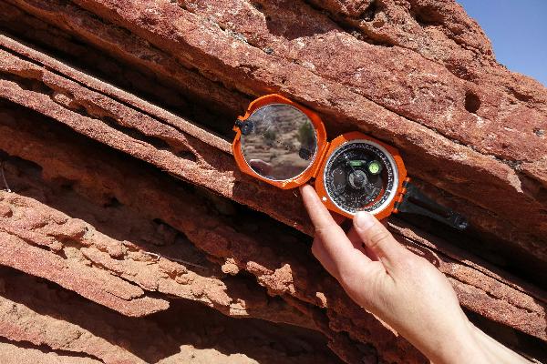 • The flat bottom with a non-slip silicon foot allows for low angle strike and dip measurements.