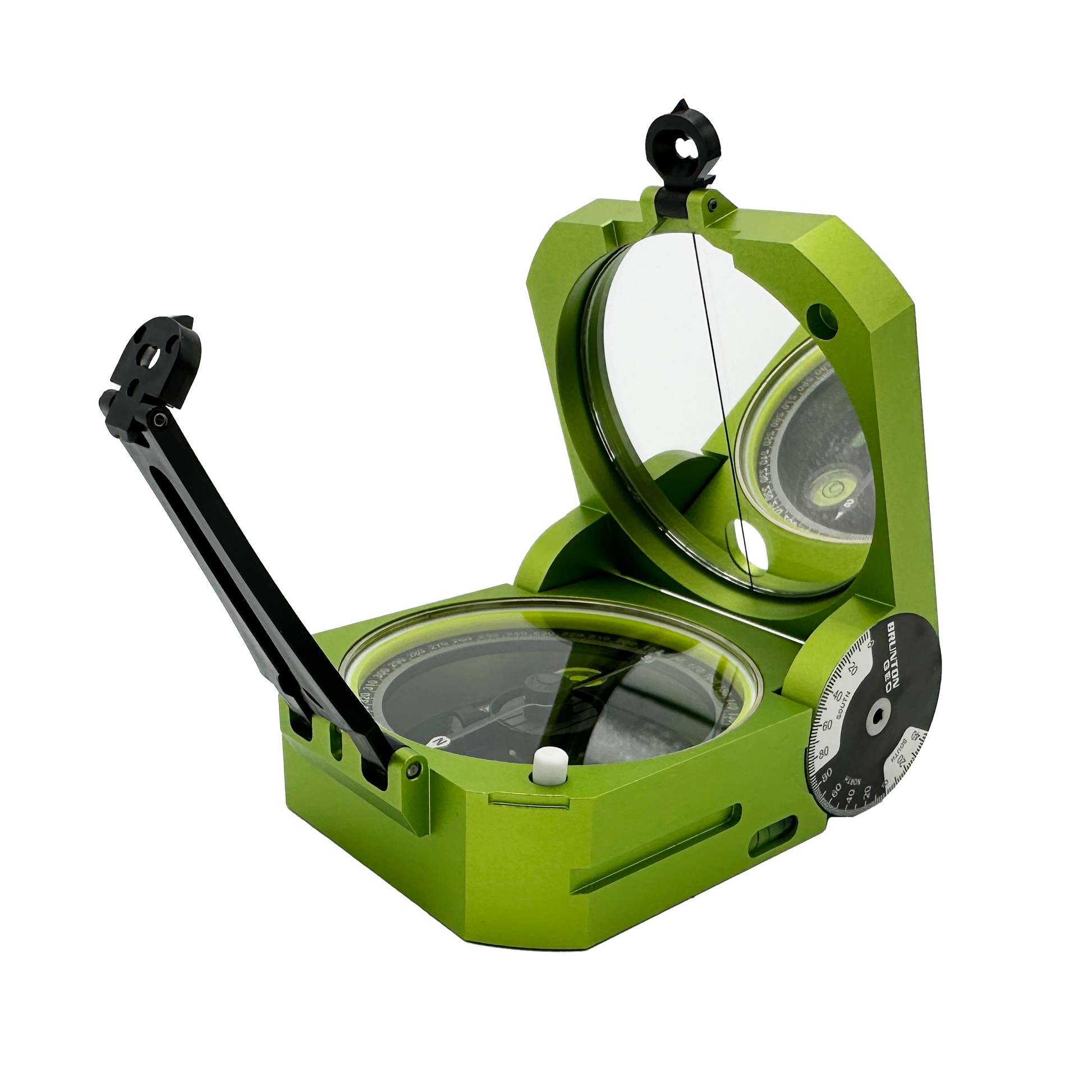• Dual long-level bubbles allow the user to level the compass from the sides.