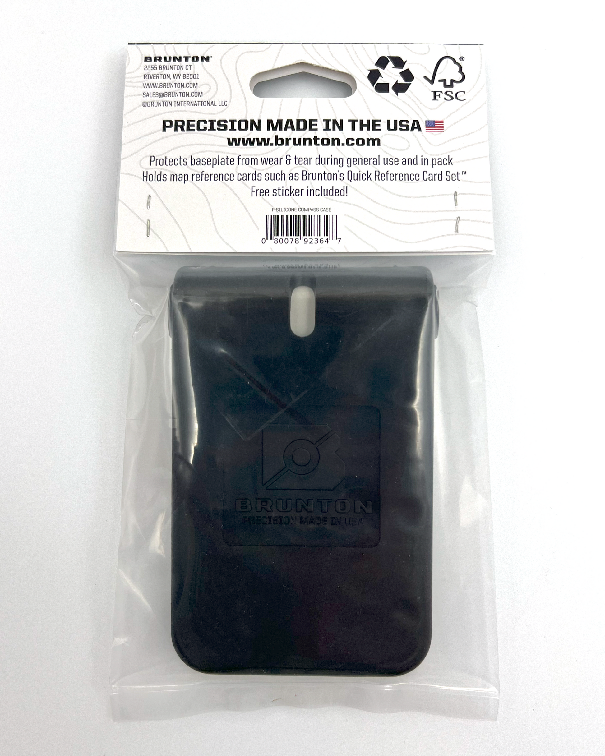 Protect your mirrored baseplate compass!  This silicone base/case has been sold only with our TruArc20 for many years, and we decided to also make it available as a separate item to purchase.  It also fits our TruArc 15/15-Glow and our GeoLite, but does not come with these models.  It's a great way to protect the baseplate of any of our mirrored compasses since the lid already protects their tops.  This helps avoid baseplate wear and tear while these compasses are in your backpack and can even be left on during use, prolonging the life of the baseplate markings.  The case also forms a perfect place to store Quick Reference Card Sets, Grain Size Cards, Topo Buddy Cards, or anything that is thin and card-sized...  Made in the USA.