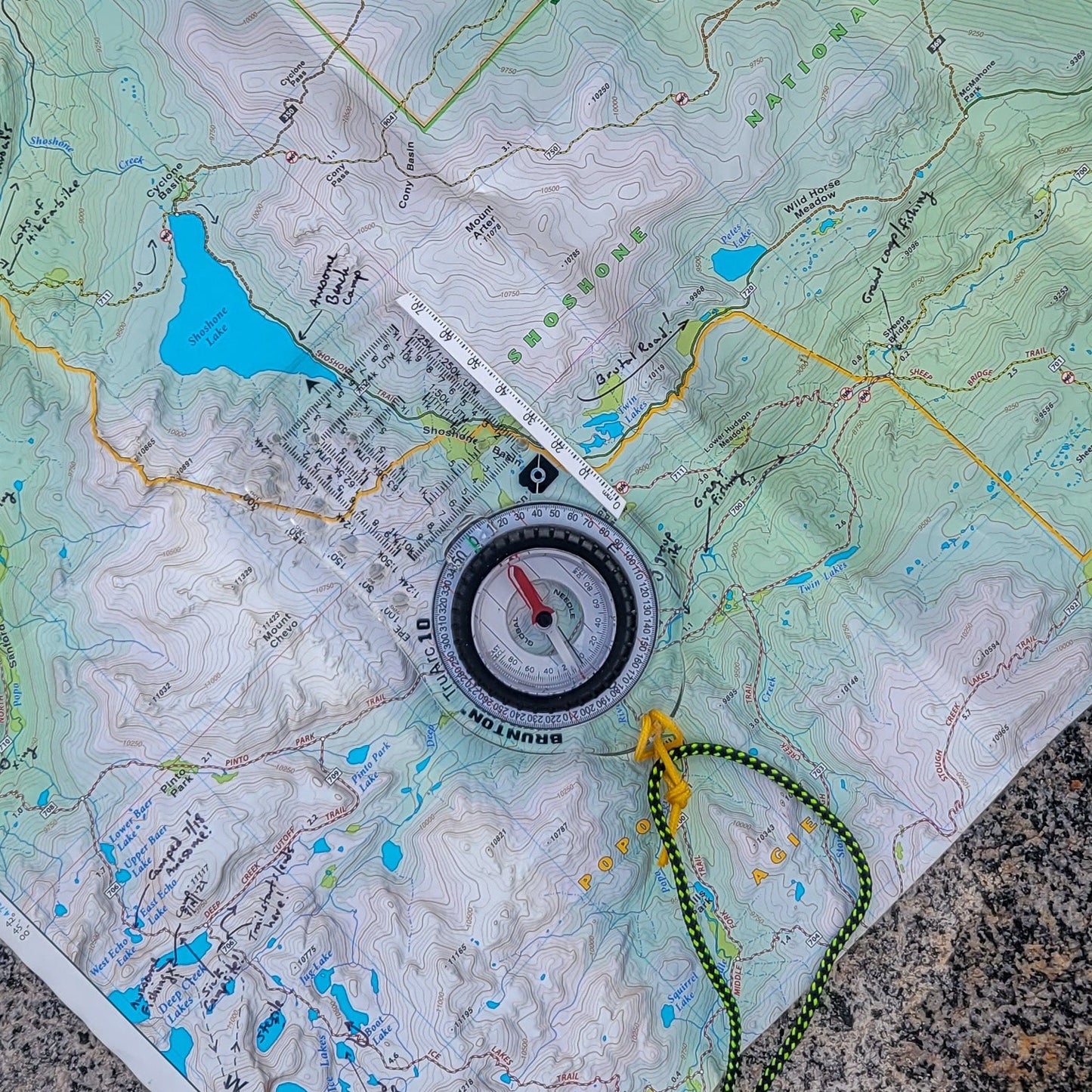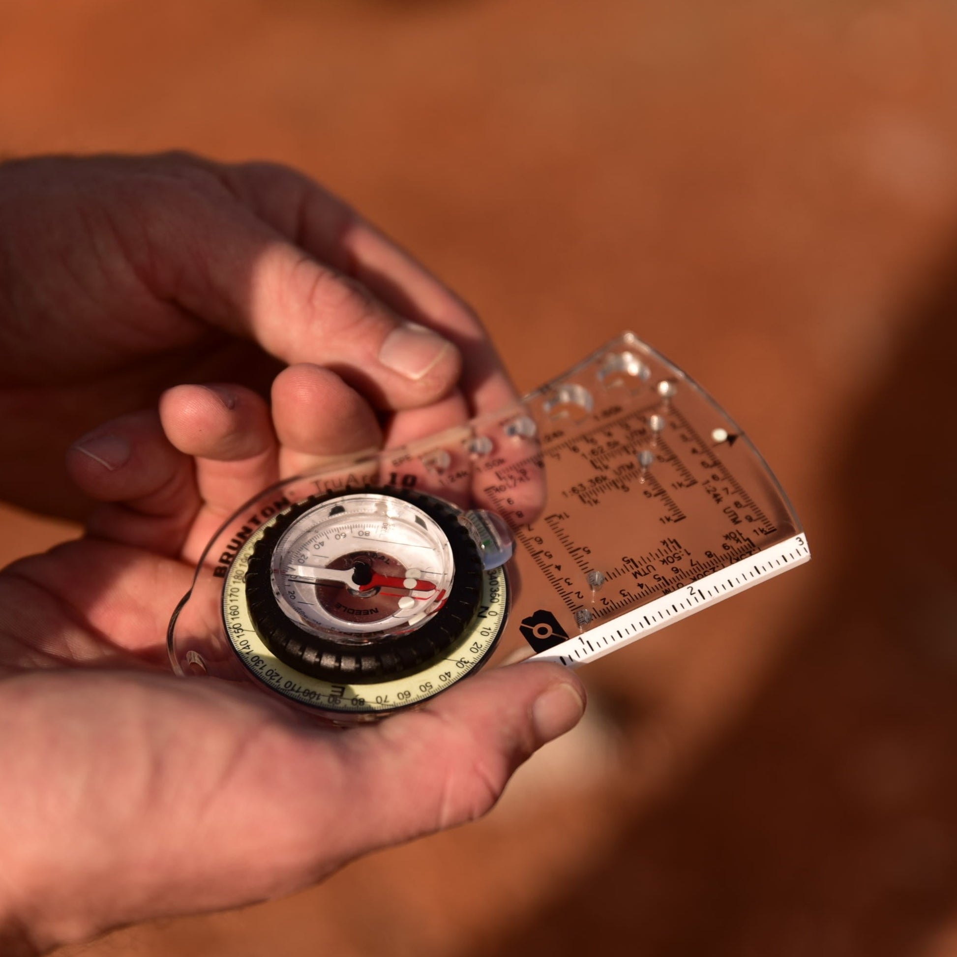 • Meridian lines on vial assist during pre-trip planning when aligning with map grid lines.
